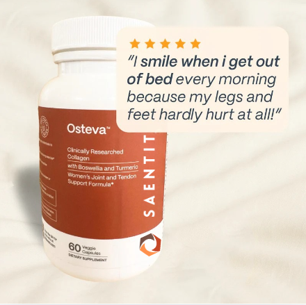 “I’m 16 days into taking Osteva, and I’m really beginning to feel a change! My knees barely hurt at all. It happened suddenly on day 14. . . I didn’t believe it at first, but two days later and still no aches! Amazing!”