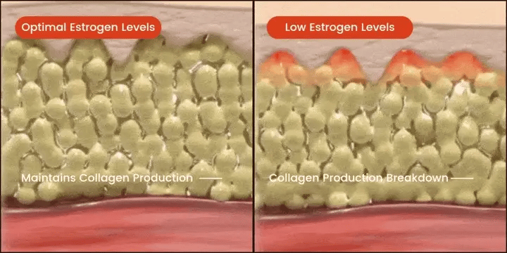 Low estrogen in women aged 40–75+ disrupts collagen production, the protein that gives your tendons strength and elasticity